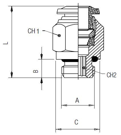 RACORD TATA (PARALEL) Teava=8 A=1/4 B=8 C=16 L=23 CH1=14 CH2=6 Pachet=10