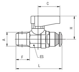 Filet A=1/8 - Tub 4mm racord push in DN=3 F=8.5 ES=14-15 L=35 C=19 H=21 Pachet=10
